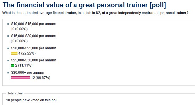 graphic of the results of the poll asking 'what is the financial value of a great PT'