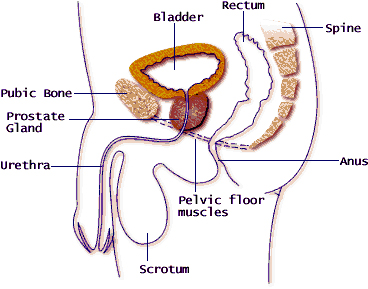Side view of male pelvic floor